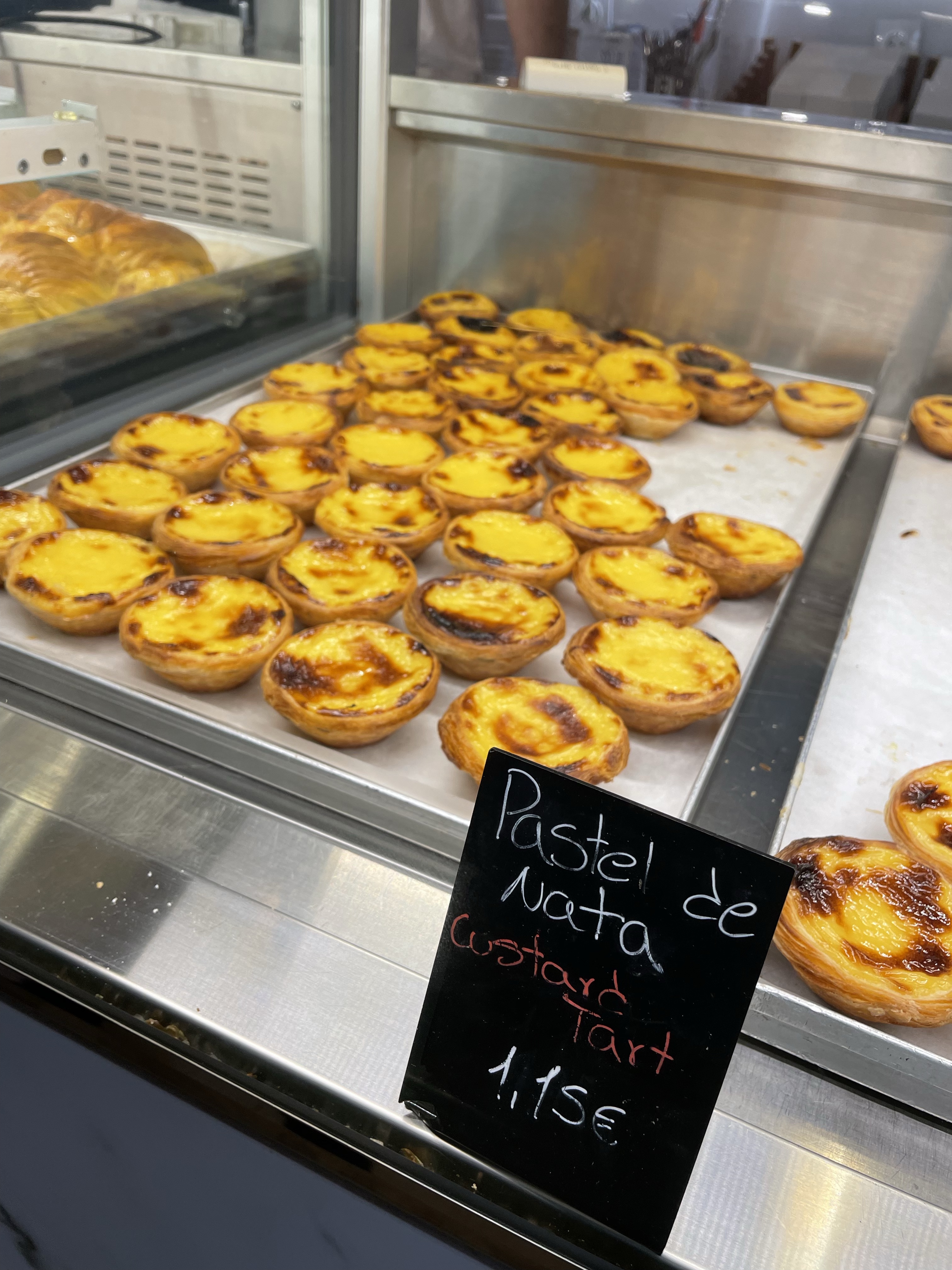 These are pastel de nata, a Lisbon-specific sweet custard tart cooked in a very hot oven (400C, or about 660 degrees Fahrenheit). They are sooooo flaky, much like a lot of the guys I’ve tried to schedule dates with in San Francisco.