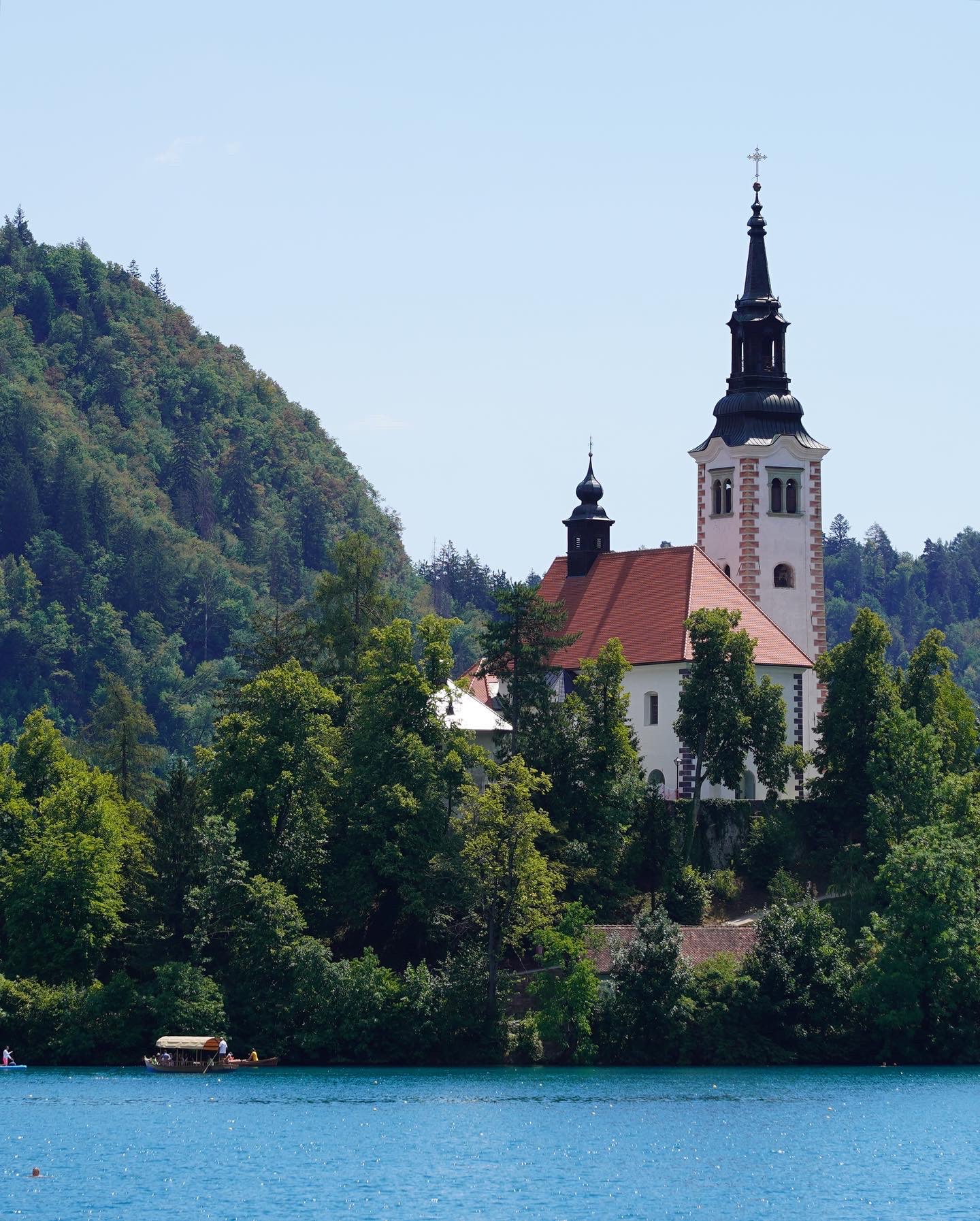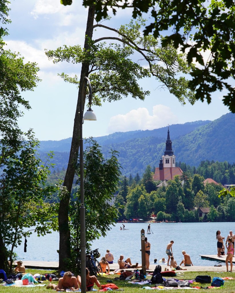 Lake Bled, with its monastery in the middle of the lake and a castle up on a hill, is gorgeous and full of tourists lazing on the shore or riding bikes or living the super relaxed, low key, rural summer you might run into on an American lakeside.