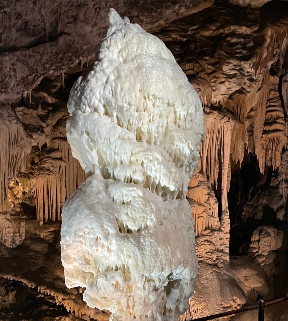 And the Postojna caves are the most stunning rock formations I’ve ever seen. The caves are giant—some chambers are over 40m (130 feet) tall. The rock formations aren’t just classic stalagmites and stalactites. They are twisted myecelial towers and mountains. They appear not like rock but like a living organism, making you hope for a future civilization whose cities grow naturally in such a way. Gaudi had nothing on these shapes. Sometimes the pillars glimmer as though studded with wet diamonds. Sometimes the limestone is free of impurities and you feel like you’re in a cavern made of white crystal.