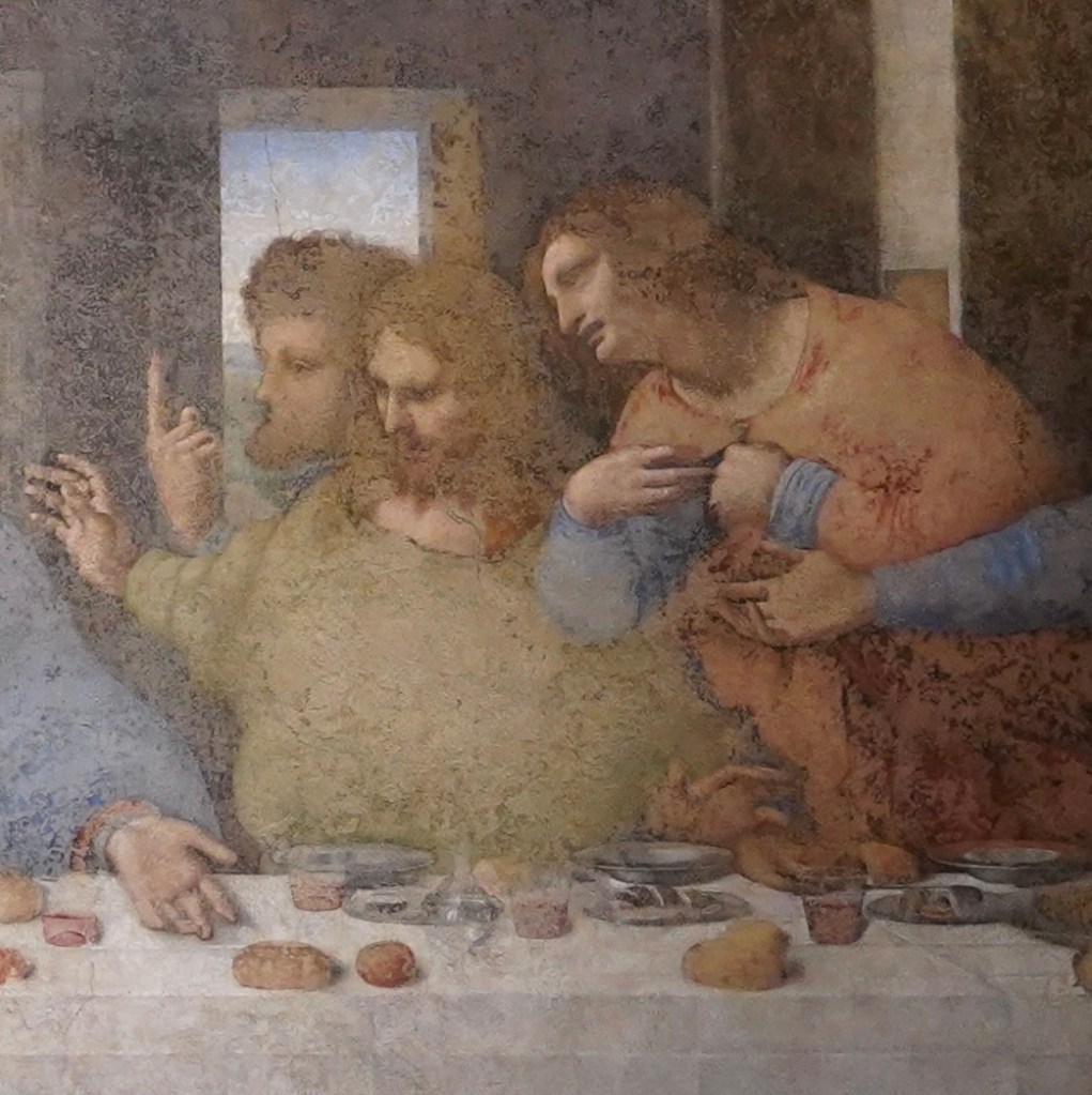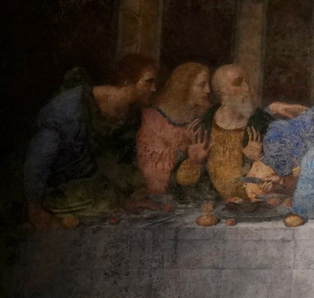 The painting was closed for restoration for over 20 years until it was reopened in 1999. I had no idea that for so much of my life, this work was completely inaccessible to the public. The photographs you see are generally oversaturated and brightened to make the figures more vivid. In truth, the work is pale, dim, and crumbling, and yet still conveys the beauty of Leonardo’s ability to capture the humanity of the disciples.